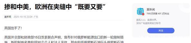 不知道您对此有什么看法呢?欢迎在下方评论区留下你的想法,喜欢文章的话记得点赞关注我们下期再见。 信源: 《掺和中美,欧洲在夹缝中“既要又要”》——直新闻——https://baijiahao.baidu.com/sid=1846148804889513230&wfr=spider&for=pc 《英国政府制裁11家中国实体,中使馆回应》——南方网——https://baijiahao.baidu.com/sid=1846107606924483731&wfr=spider&for=pc 《英国财政大臣里夫斯:将对俄罗斯两大石油公司卢克石油和俄罗斯石油公司实施定向制裁》——金十数据——https://flash.jin10.com/detail/20251015200704846800
